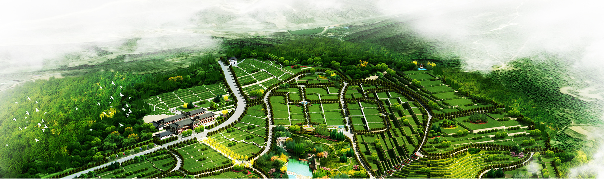 現(xiàn)代城市園林公墓的建設(shè)中應(yīng)依墓園的布局和特點(diǎn),以特色帶全面,從園林綠化與公墓環(huán)梅的協(xié)調(diào)與配合來加以藝術(shù)的