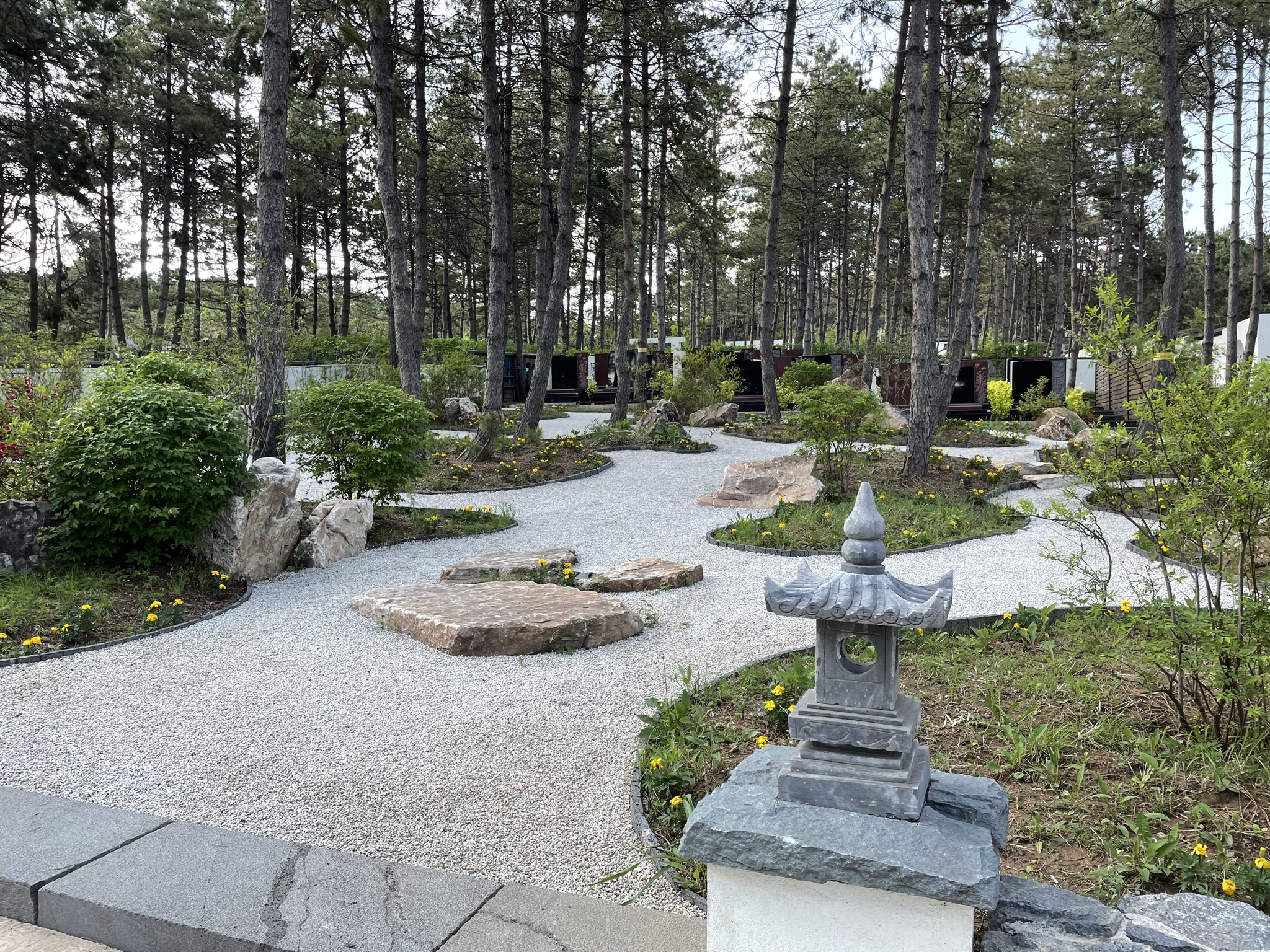 摒棄陰森、恐怖的感覺,賦予祥和、寧靜的氛圍。陵園公園化的理念在于把陵園做成一個大公園,通過墓碑的合理擺放,園道的曲折、綠化的自然遮掩、園林小品的有機結合,建一座陵園“公園”。讓我們的前輩和故人安靜地置身于這樣一個花園中,每逢祭掃之日,后人可踏著和風、迎著煦日來緬懷他們。