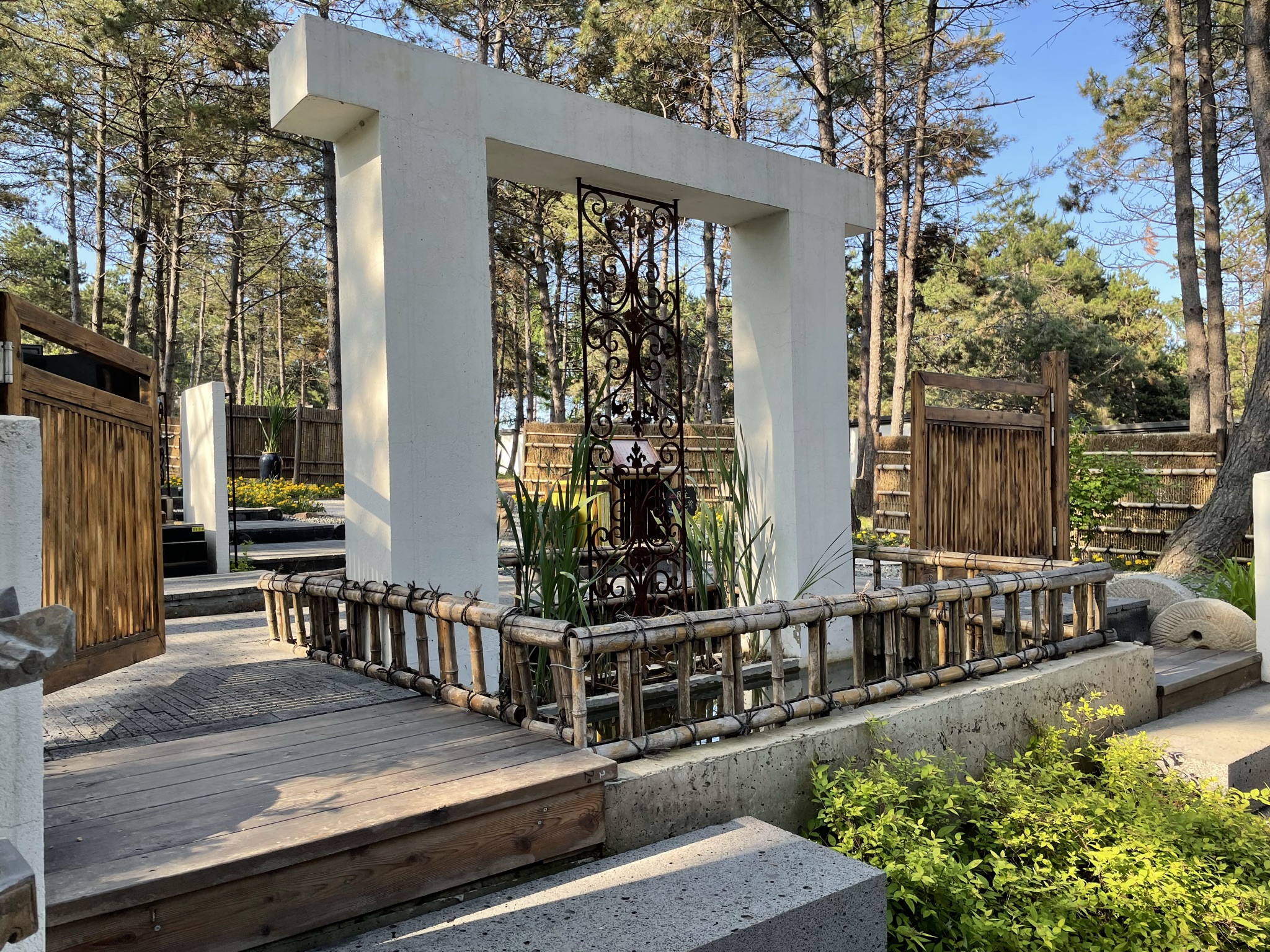 陰事陽做,就是讓人們進入陵園,看不到“排排坐”的墓碑,而是草坪、鮮花、河流、與之相協調的建筑、園林小品等,耳邊傳來的是悠揚的音樂,天上的飛鴿、蝴蝶、水中的游魚,消除了傳統意義上陵園給人們帶來的心理壓抑感。這里的亭臺樓閣、小橋流水換氣人們對生命意義的默想,讓人們更深切的體會人世間的愛與溫暖;這里的鳥語花香,撫慰憂傷的靈魂,平和沉痛的心情,讓生命的風帆重新揚起。這里的人們以獨特的方式盡情釋放對親人思念,也慶祝生命中每一個春光明媚或秋雨瀟瀟的日子,讓回憶不再凝重。輕柔的音樂飄繞在整個墓園,奏響著人生的旋律。讓融入這片土地的人們,靜靜的享受休憩。這里雖是墓地,卻勝似天堂。
